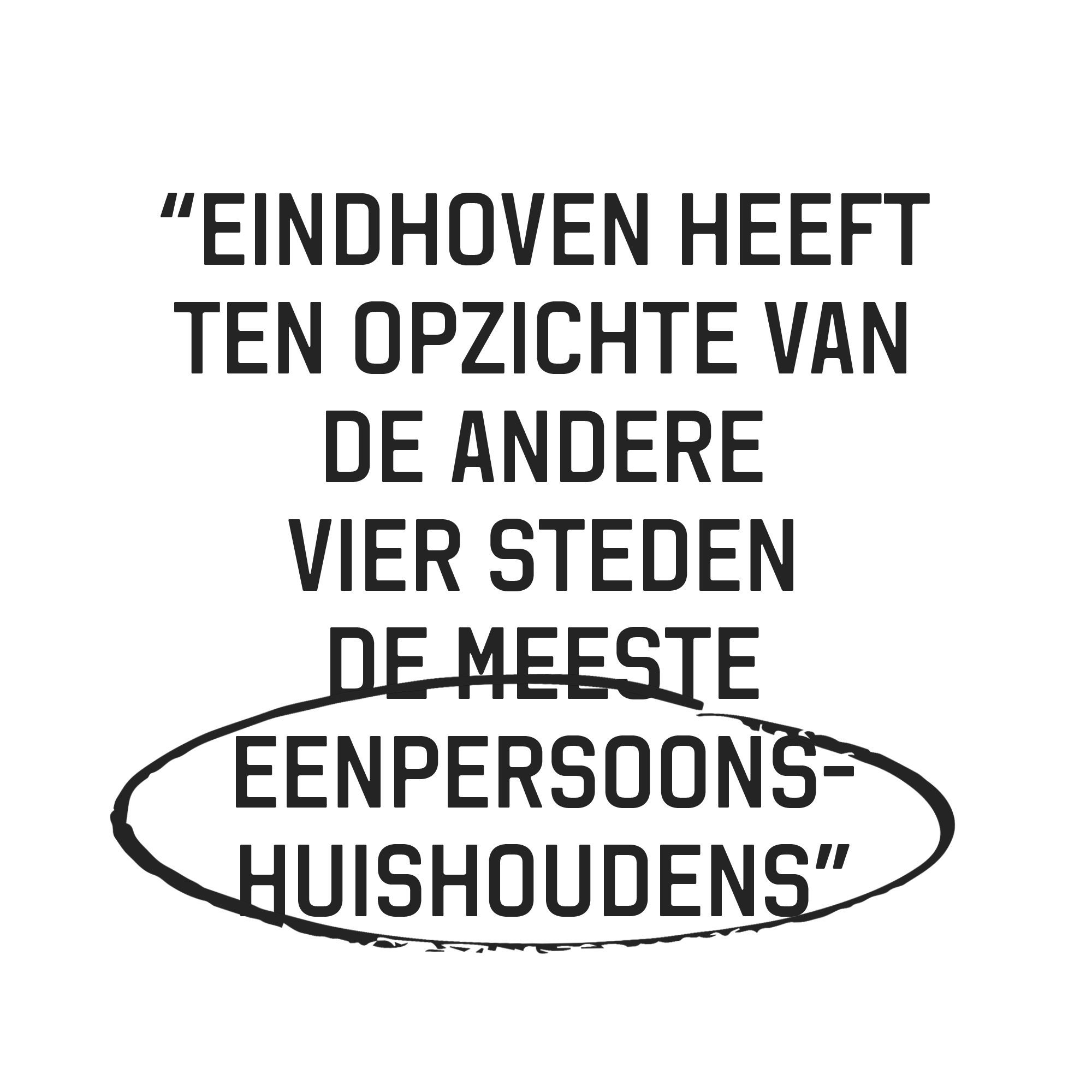 Als Brabantse stad én grootstedelijke regio hoort Eindhoven niet alleen thuis in het rijtje van de B5, maar ook van de G5; Eindhoven zoekt en vindt namelijk meer en meer aansluiting bij de grote 4 steden in de Randstad. Met het grootste aandeel eenpersoonshuishoudens van de B5 (48%) lijkt Eindhoven van alle Brabantse steden het meest op de G4 steden. De voorspelling is dat deze groep eenpersoonshuishoudens het sterkst blijft groeien de komende jaren.
